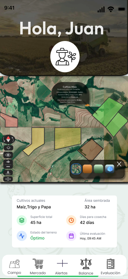 Optimiza tu producción con datos en tiempo real. Accede a análisis satelitales, monitoreo de cultivos y financiamiento especializado.